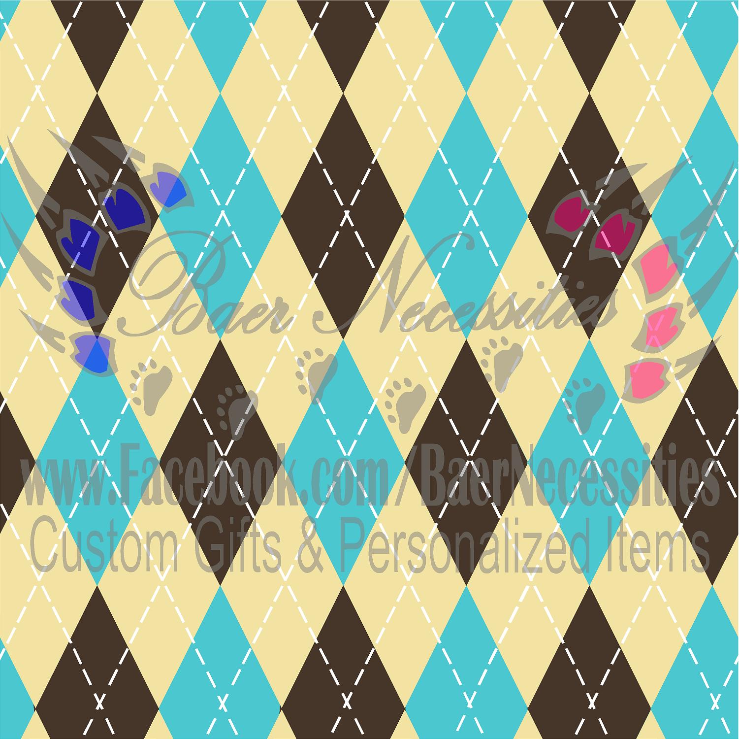 Brown, Cream, Teal Tangram with White Stitching Seamless Pattern - Adhesive