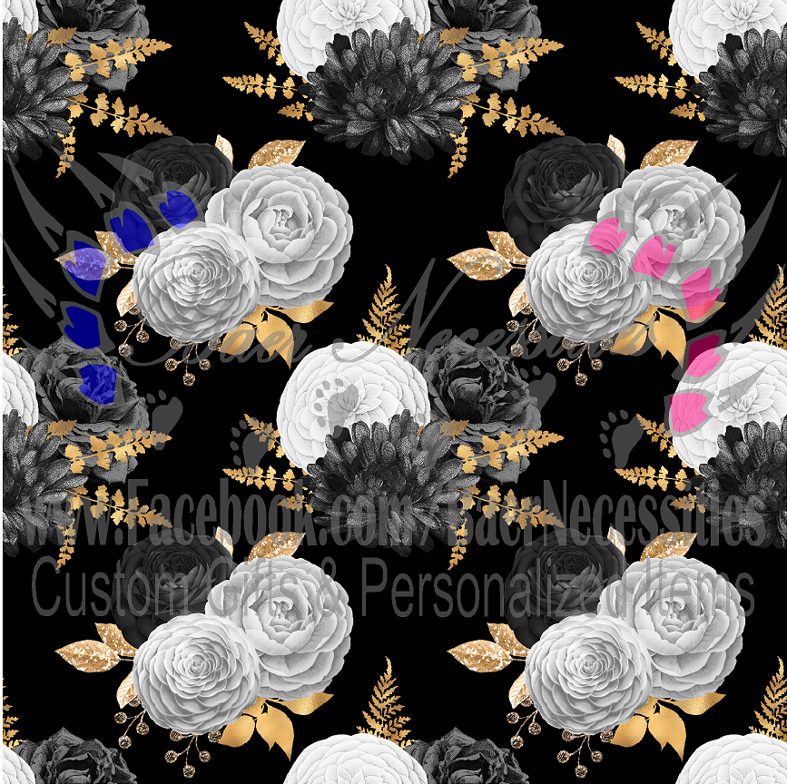 Gold Black White Floral 11 - Adhesive