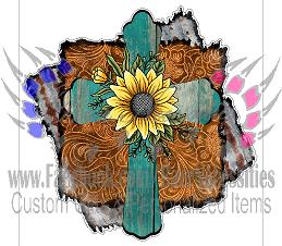 Rustic Cross with Sunflower - Transfer